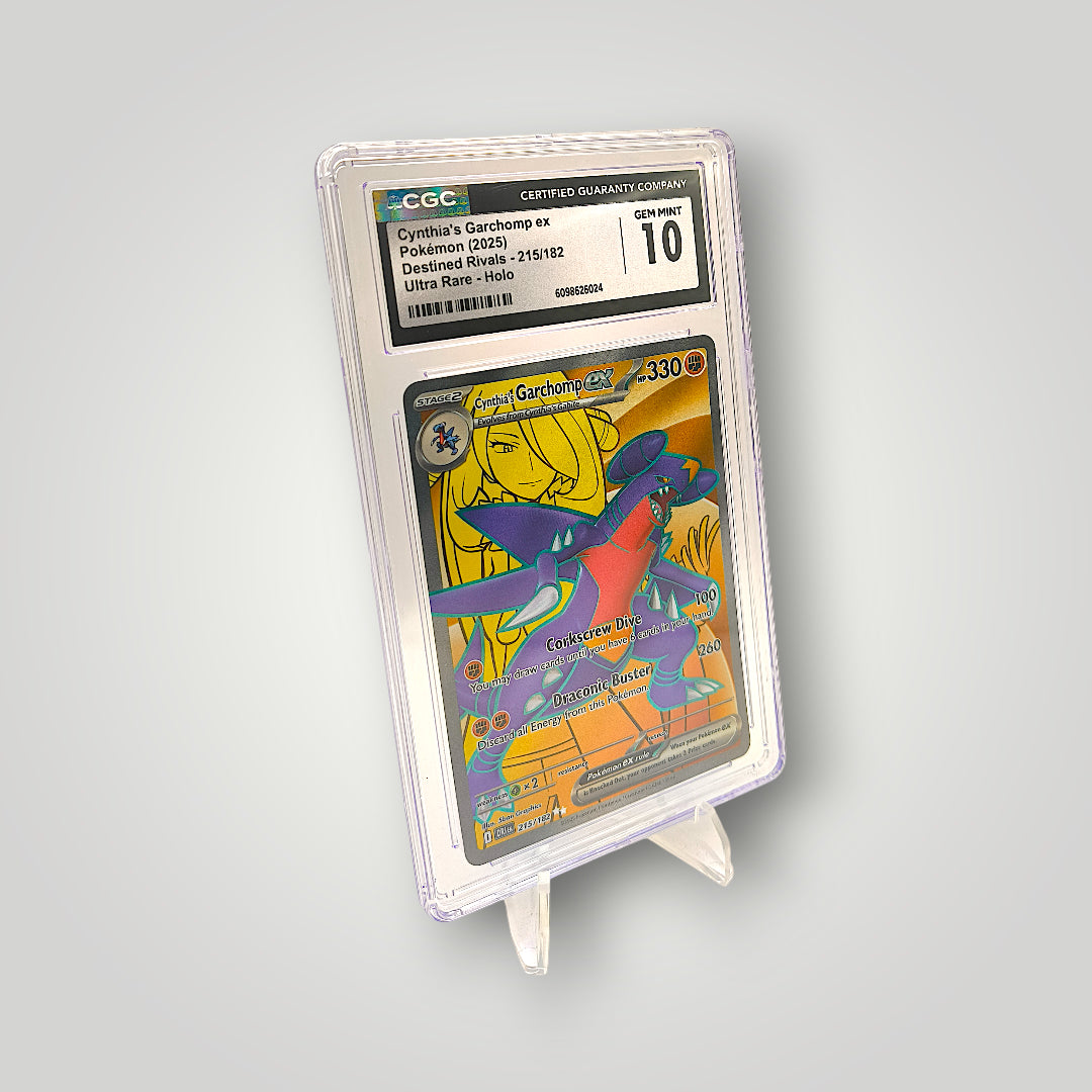 - 1x CGC graded Pokémon card: Cynthia’s Garchomp ex (Destined Rivals 215/182)
