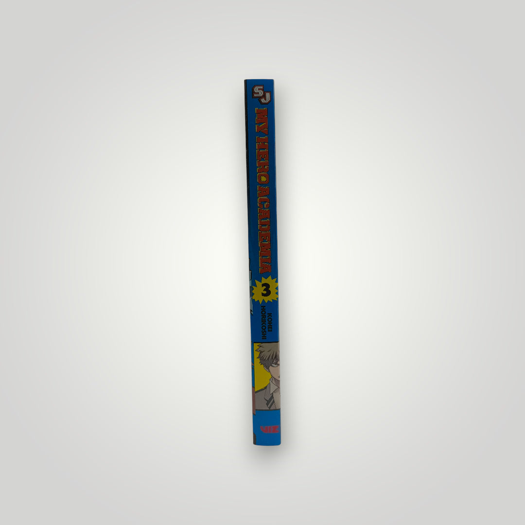 New, unread English-language paperback manga for My Hero Academia, published by VIZ Media. Volume 3 continues the superhero series written and illustrated by Kohei Horikoshi.